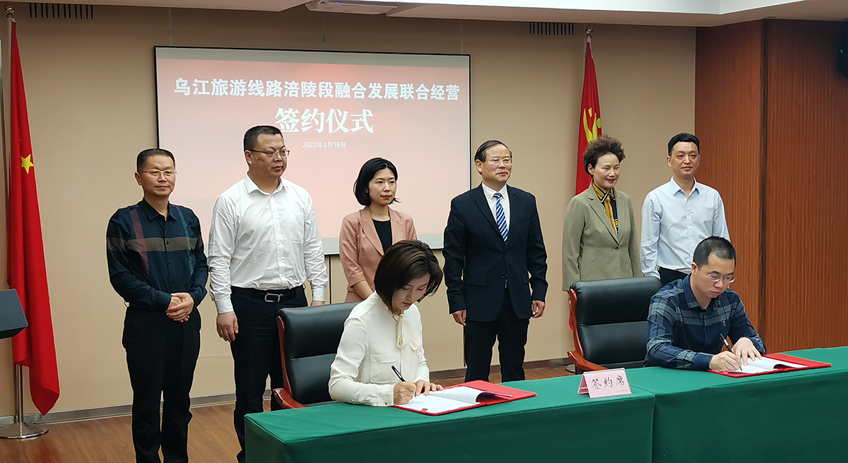 2022年3月18日,乌江旅游线路涪陵段融合发展联合经营签约仪式在重庆市文化和旅游发展委员会隆重举行。重庆武陵文旅融合发展有限公司(以下简称“重庆武陵文旅公司”)与重庆涪陵旅游发展集团有限公司(以下简称“涪陵旅发集团”)正式开启乌江旅游线路涪陵段合作。市文化旅游委副主任秦定波、涪陵区政府副区长靖开媛、重庆旅游投资集团有限公司党委副书记、总经理杨玉芬以及市文化旅游委相关处室、涪陵区文化旅游委等单位领导亲临签约现场,共同见证签约仪式。