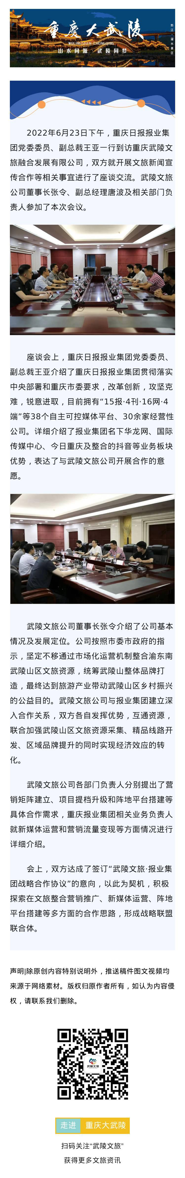 重庆日报报业集团与武陵文旅公司召开文旅宣传合作座谈会
