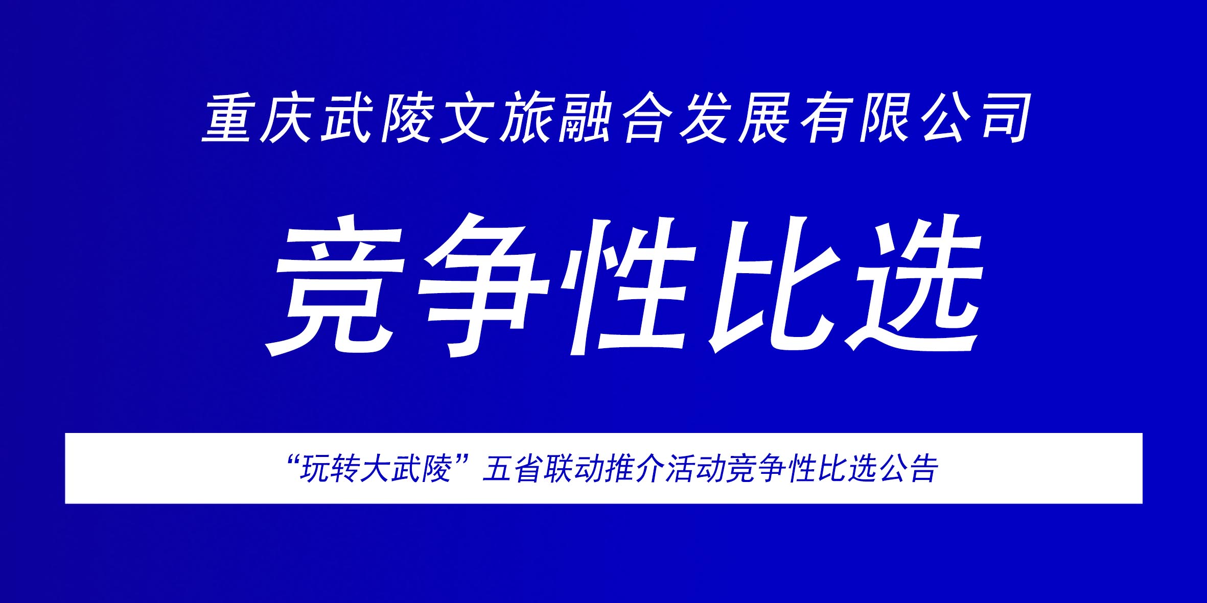 经重庆武陵文旅融合发展有限公司(以下简称比选方)第十五次总经理办公会审议决定,拟赴湖南、贵州、湖北、四川四地开展4场“玩转大武陵”五省联动推介季活动。现对“玩转大武陵”五省联动推介季活动项目分执行地点分别进行竞争性比选,欢迎有资格的单位报名参加比选。比选内容与要求如下: