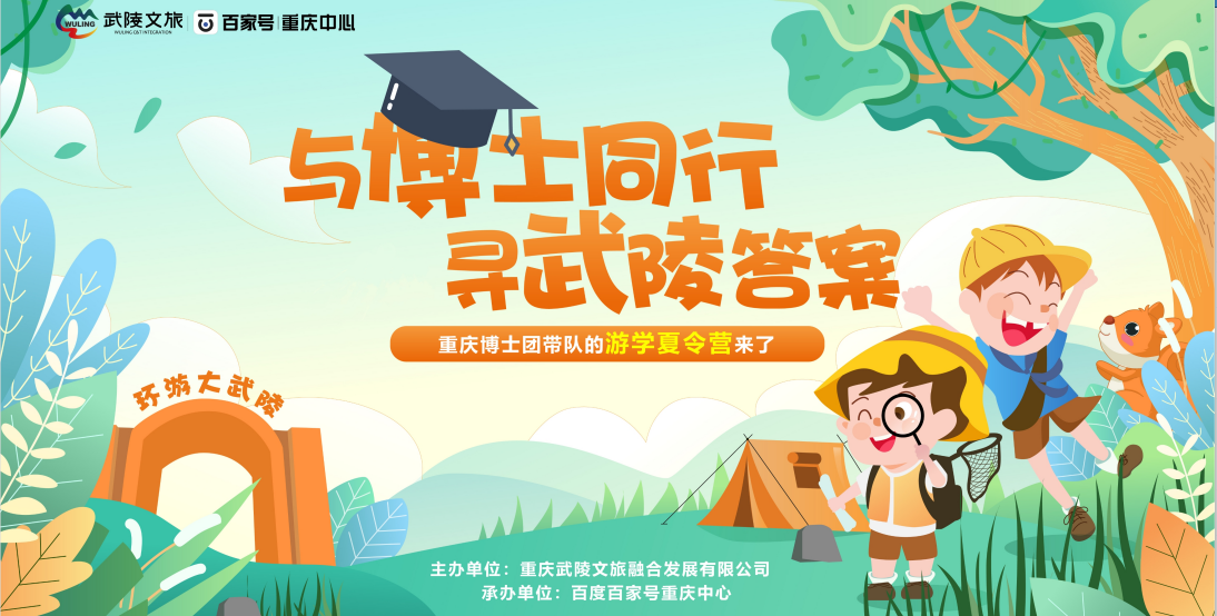 8月8日,重庆武陵文旅融合发展有限公司联合百度百家号重庆中心发起的“与博士同行,寻武陵答案”游学夏令营首发团满员出发。20多位青少年团员跟随名校博士,一起解锁“奇妙大武陵”。